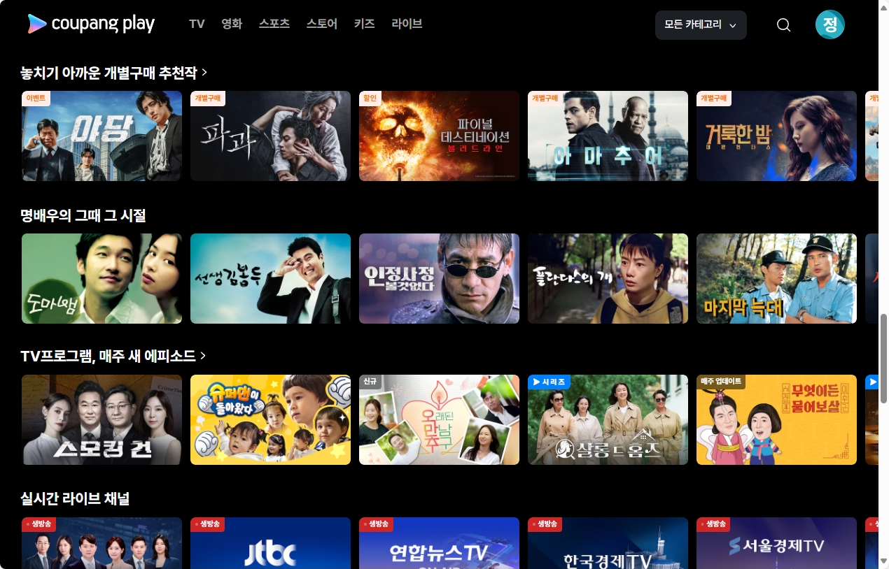 쿠팡플레이의 진짜 강점은 ‘실시간 콘텐츠’입니다!